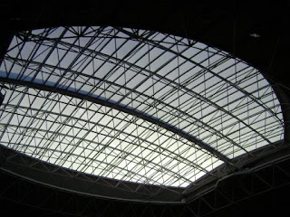 O seu Tecto é uma obra da tecnologia da Engenharia, com esta estrutura do tecto é possível a realização de todos os espectáculos, seja qual for a Temperatura na Cidade de Elvas.